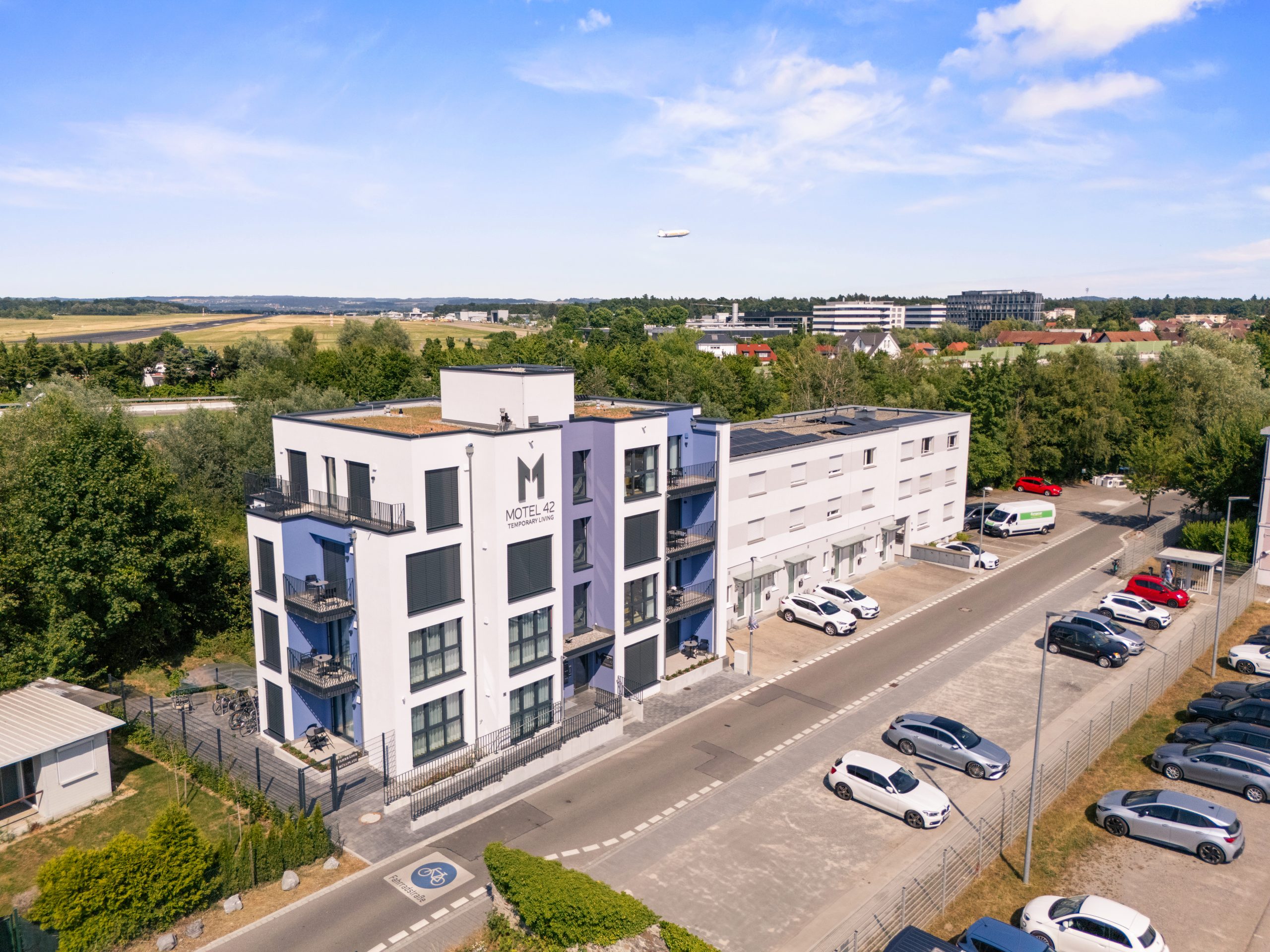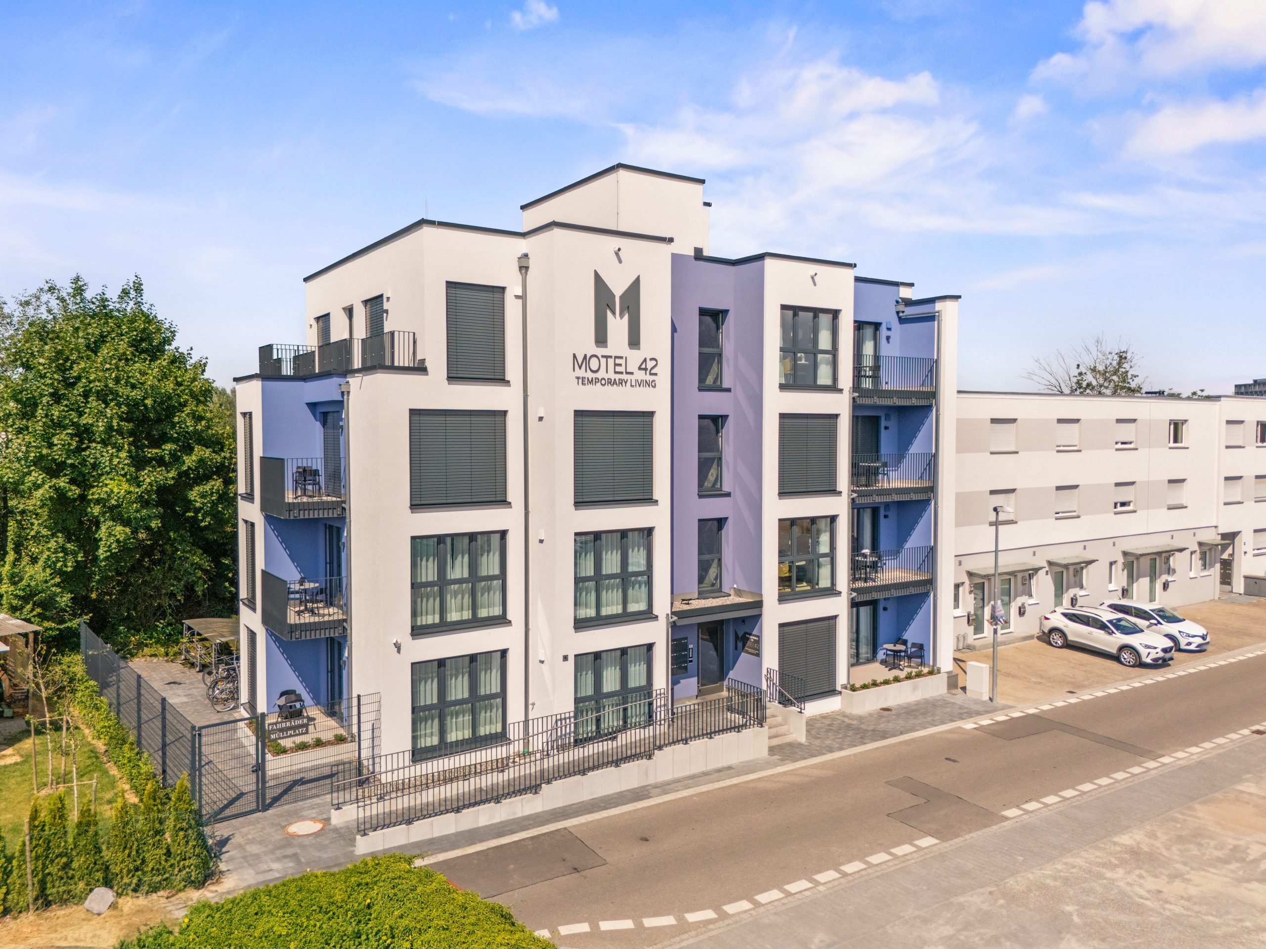Motel42 – Temporary Living! ANKOMMEN. LOSWOHNEN. WOHLFÜHLEN – Genau das können Sie in unseren Motel 42 Serviced Apartments! Denn bei uns wird »Wohnen auf Zeit« neu interpretiert. Unsere vollmöblierten und hochwertig eingerichteten Studios vereinen den Wohlfühl-Charakter einer Wohnung mit einem zeitgemäßen Mix aus klassischen und digitalen Services eines Hotels. Egal, ob Sie zwei Nächte oder mehrere Monate bleiben, ob Sie als Projektmitarbeiterin oder Mitarbeiter, Doktorandin oder Doktorand, Wohnungssuchende oder Tourist an den Bodensee kommen: Das Motel 42 bietet jedem Gast eine urbane Unterkunft im Stil eines modernen Stadthauses. In unseren Serviced Apartments können unsere Gäste direkt »loswohnen«. Eine voll ausgestattete Kitchenette, ein gemütlicher Ess-, Wohn- und Schlafbereich und ein großzügiges Badezimmer schaffen eine wohnungsähnliche Atmosphäre. Und das heißt auch, dass ausreichend Stauraum, große Ablageflächen, gute Beleuchtung und viele Steckdosen maßgeblich zur Ausstattung dazugehören. Auch im »Clean-up Room«- steht alles für eine eigenständige Zimmer- und Wäschereinigung zur Verfügung, sodass die Freiheit und Unabhängigkeit aus den eigenen vier Wänden spürbar werden. Doch trotz aller Eigenständigkeit wird Service im Motel42 großgeschrieben: Die wöchentliche Zimmerreinigung und der Wäschewechsel sowie kostenloses WLAN mit unkompliziertem Zugang sind bei Ihrer Unterkunft natürlich inklusive.