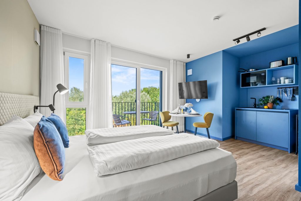 Aus unseren Apartments öffnet sich ein beruhigender Blick auf die Friedrichshafen-Umgebung